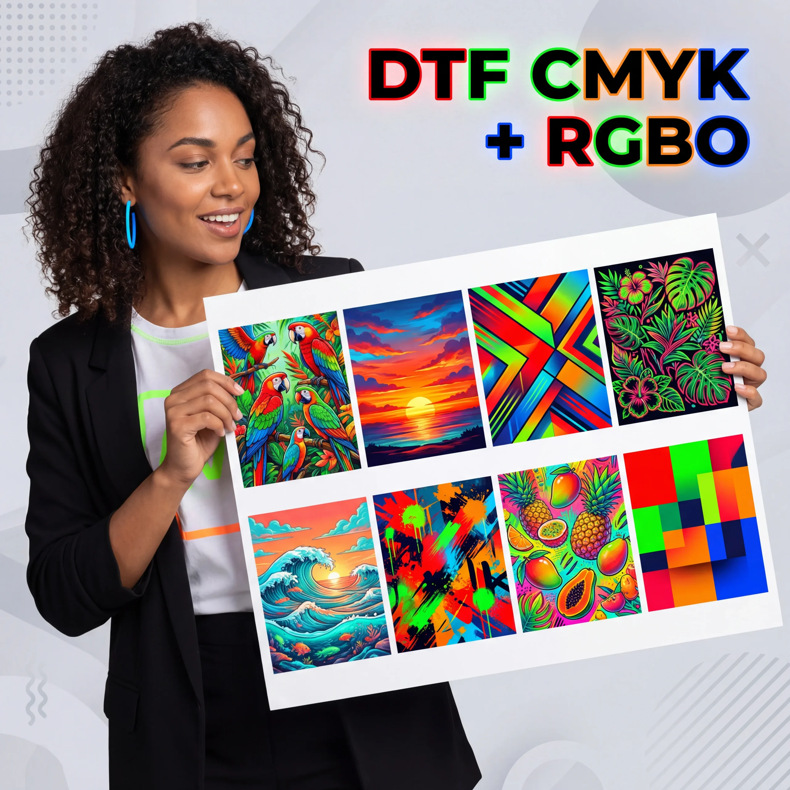 - Vibrant Neon Prints—Perfect for gradients, neon effects, and photo-realistic designs.